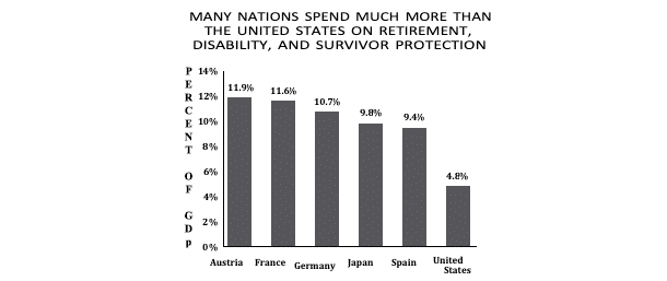 At the end of the 21st century, Social Security is calculated to cost 6.16 percent of GDP. That is a lower percentage of GDP than many other industrialized countries spend on their counterpart programs today:
