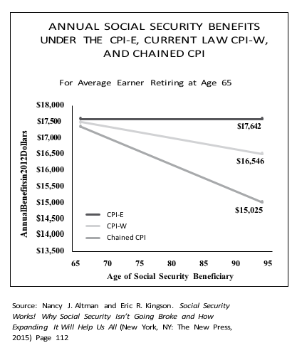 So, what does this have to do with Social Security? Like the poverty level, Social Security’s modest benefits are automatically adjusted to keep pace with inflation. If not adjusted, those benefits will erode, slowly but inexorably losing their purchasing power over time. These annual adjustments are already too low, but they are better than no adjustment at all. The chained CPI would make these adjustments even less adequate.